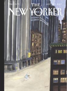 Though Goscinny’s encouragement was significant, nothing was more influential than the cartoons of Charles Addams, Saul Steinberg, and James Thurber, which Sempé first discovered in discarded copies of The New Yorker magazine. He was so moved and overwhelmed by their work, that he swore he’d never look at another New Yorker until they hired him. In the late 1970’s Sempé followed his dream and traveled to New York. Soon, his illustrations began to appear on the covers of The New Yorker, 166 to date.