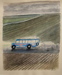 Sempé was a late bloomer. He was expelled from school as a young man and subsequently failed to pass exams for employment at the local post office, bank or railroad. He finally found work as a door-to-door salesman, selling tooth powder and delivering wine by bicycle in the Gironde. Bicycling soon became the joy of his life and later on a motif in his drawings. Many years later he said, “For thirty years, I went around everywhere on my bicycle. No matter the destination, rain or shine, I’d go there on my bike. Even if I was going to a fancy event, I’d show up in my tux in ankle straps, rain-drenched but happy.”