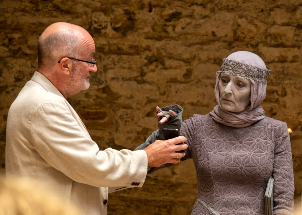 In brief, while preoccupied with his mobile phone, Fred accidentally gets locked in the chapel where Eleanor and her husband, King Henry II of England were interred, Eleanor magically wakes from the dead and the past and present collide, with rich dialogue and poignant humor. With his marriage to Eleanor in 1152, King Henry II reigned over lands from Scotland to the Spanish border. Together they had 8 children. Eleanor also had 2 daughters from her first marriage to Louis VII of France. Of all of her children, she had a soft spot for Richard, who succeeded his father as King for 10 years until his death at Chalus Chabrol castle, not far from Chateau de Bonneval. During their ephemeral encounter,